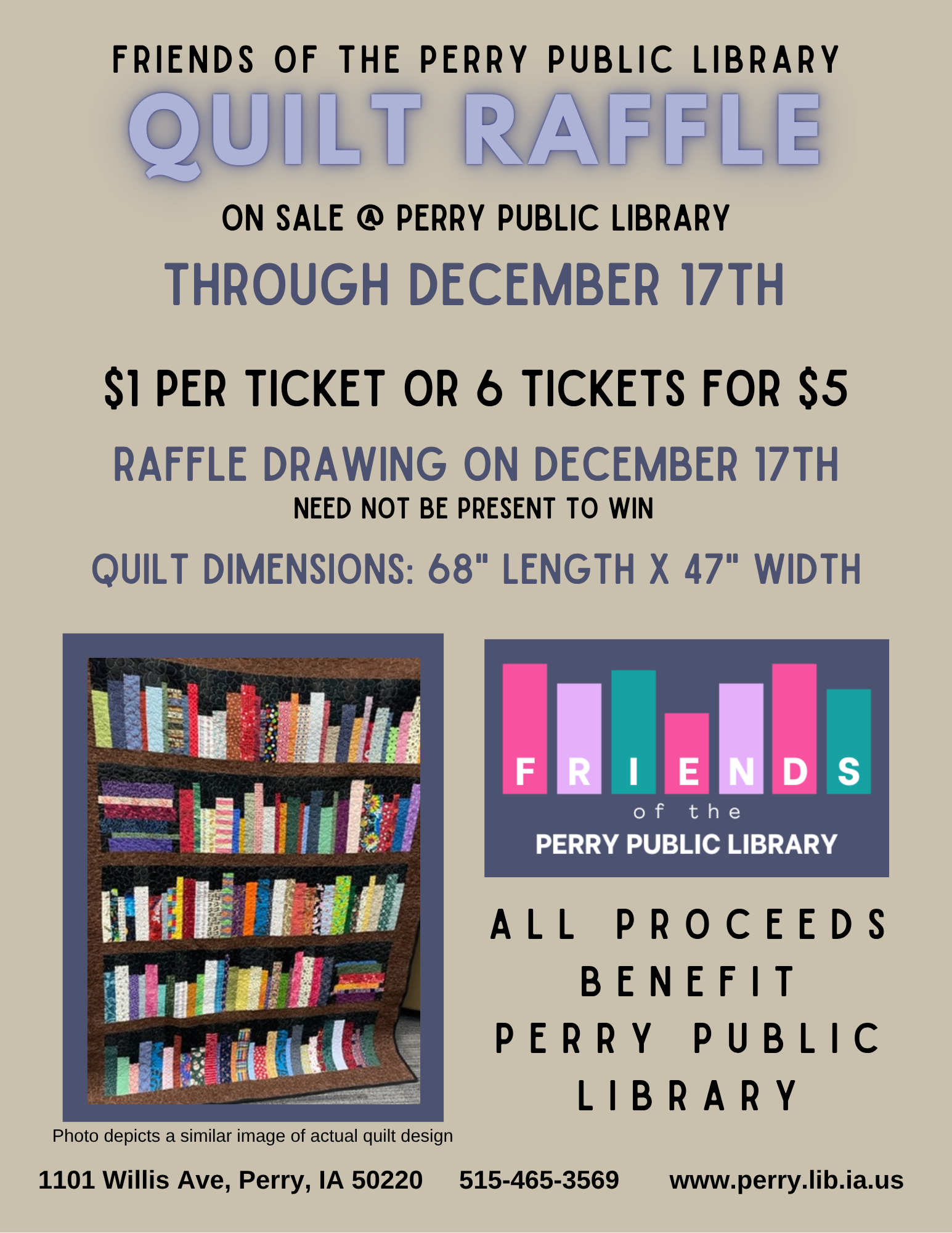 The Friends of the Perry Public Library is a 501 (c) (3) non-profit organization consisting of involved, caring people who support and promote the services and programs of the public library. Donations and volunteer efforts help in the library’s ability to provide enhanced programming, new and emerging technology, and funding for special projects. This allows the library to fulfill its mission to the community. Please consider supporting the Friends as a volunteer or with a tax deductible monetary donation.