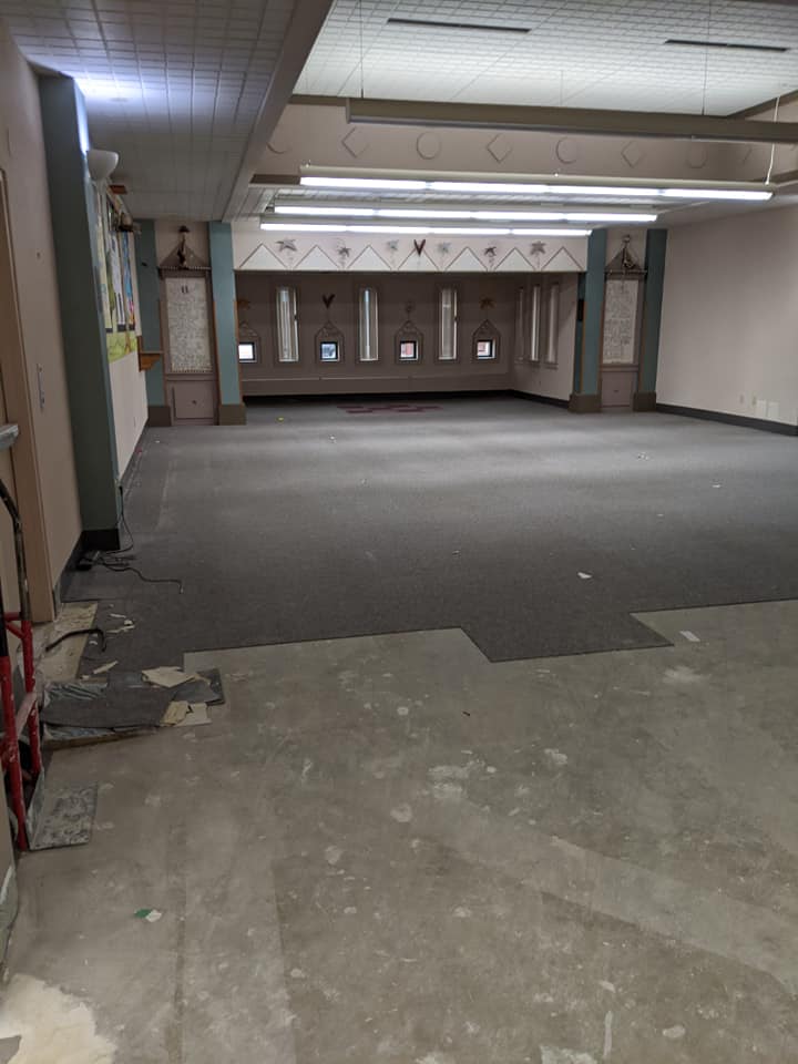 September 9: Childrens Area Before New Carpet Installation