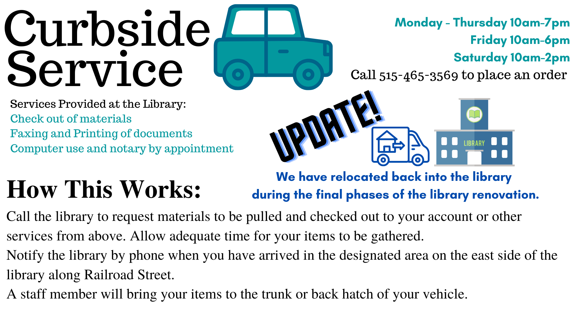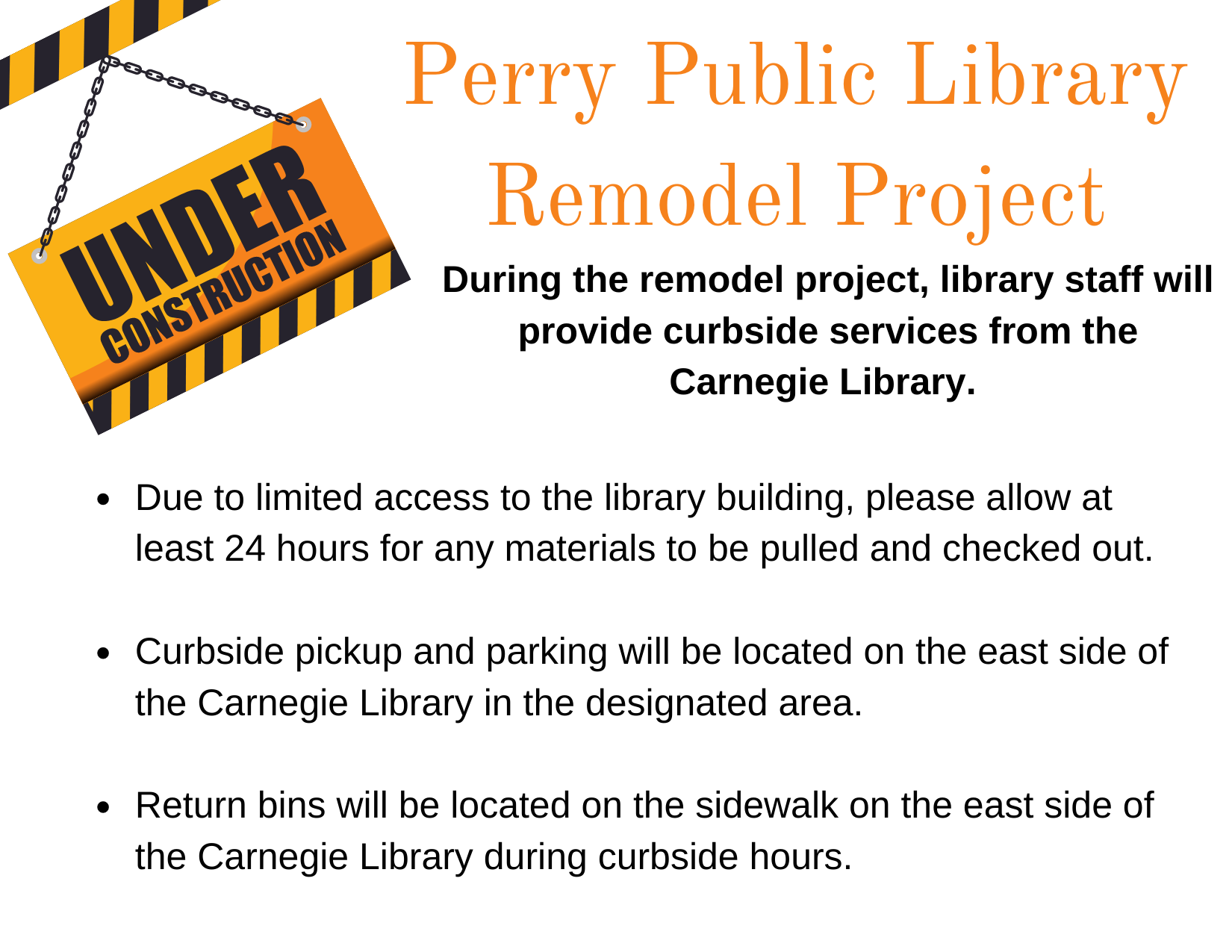 We would like to recognize and thank all the funders of the 2020 Library Building Renovation. We received grants from the Bock Family Foundation, Inc., Dallas County Foundation, and the Roy J. Carver Charitable Trust, Perry Public Library Foundation along with capital funding from the City of Perry. We are incredibly pleased with the architect, ETHOS Design Group, Inc. and general contractor, Blue Ribbon Builders.