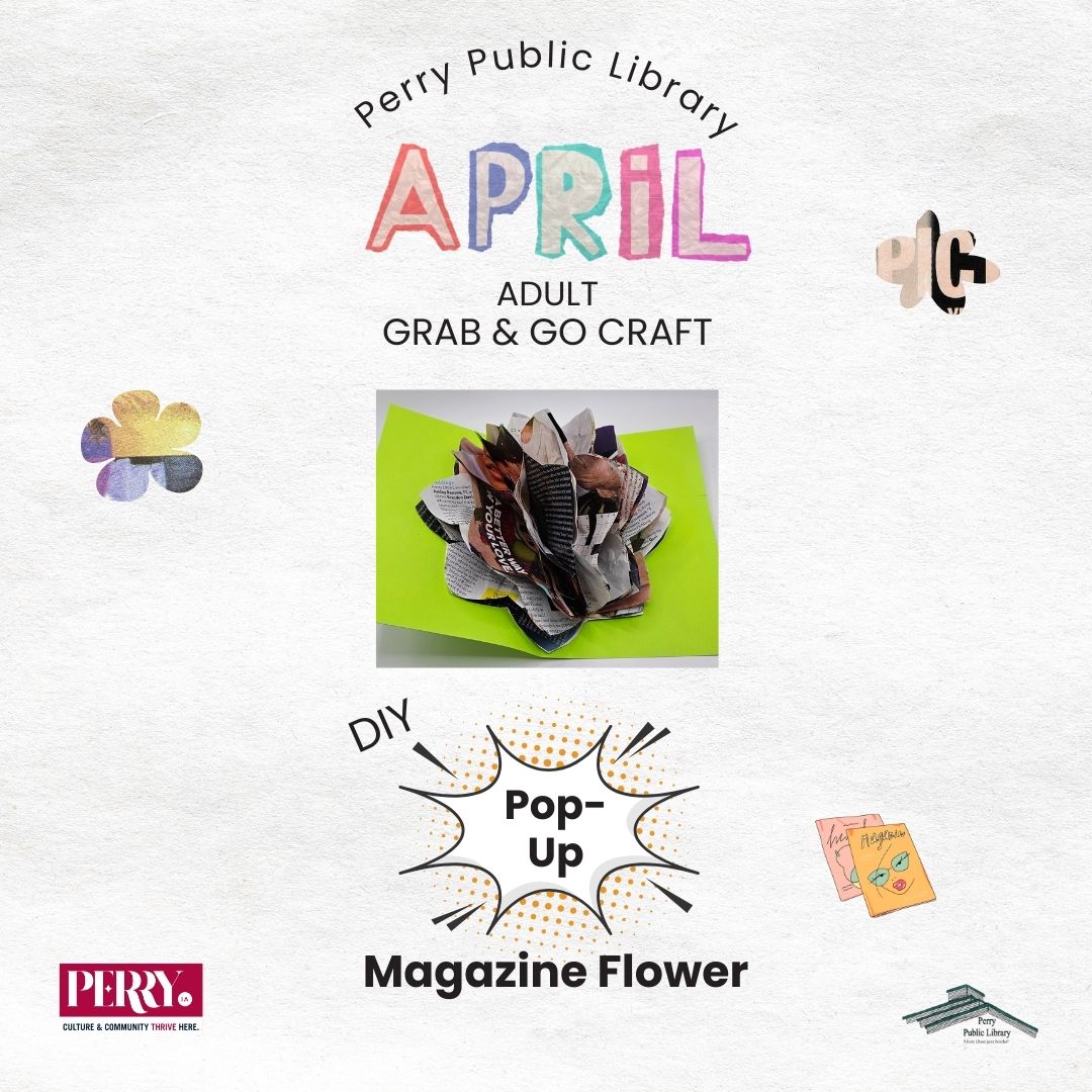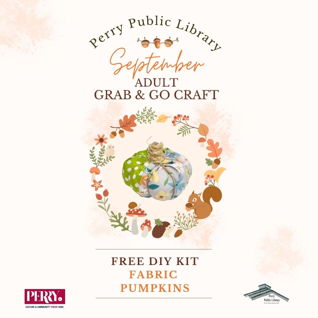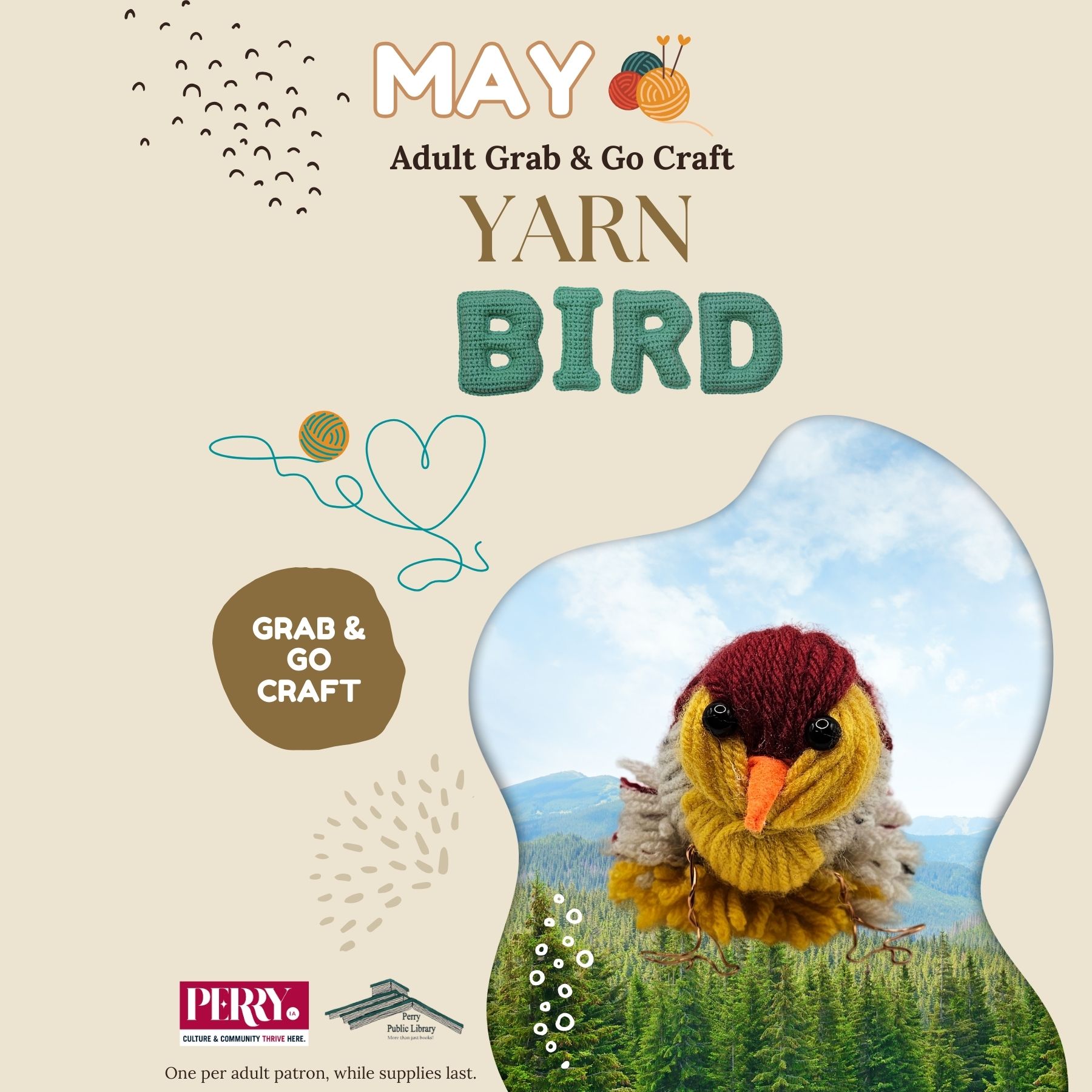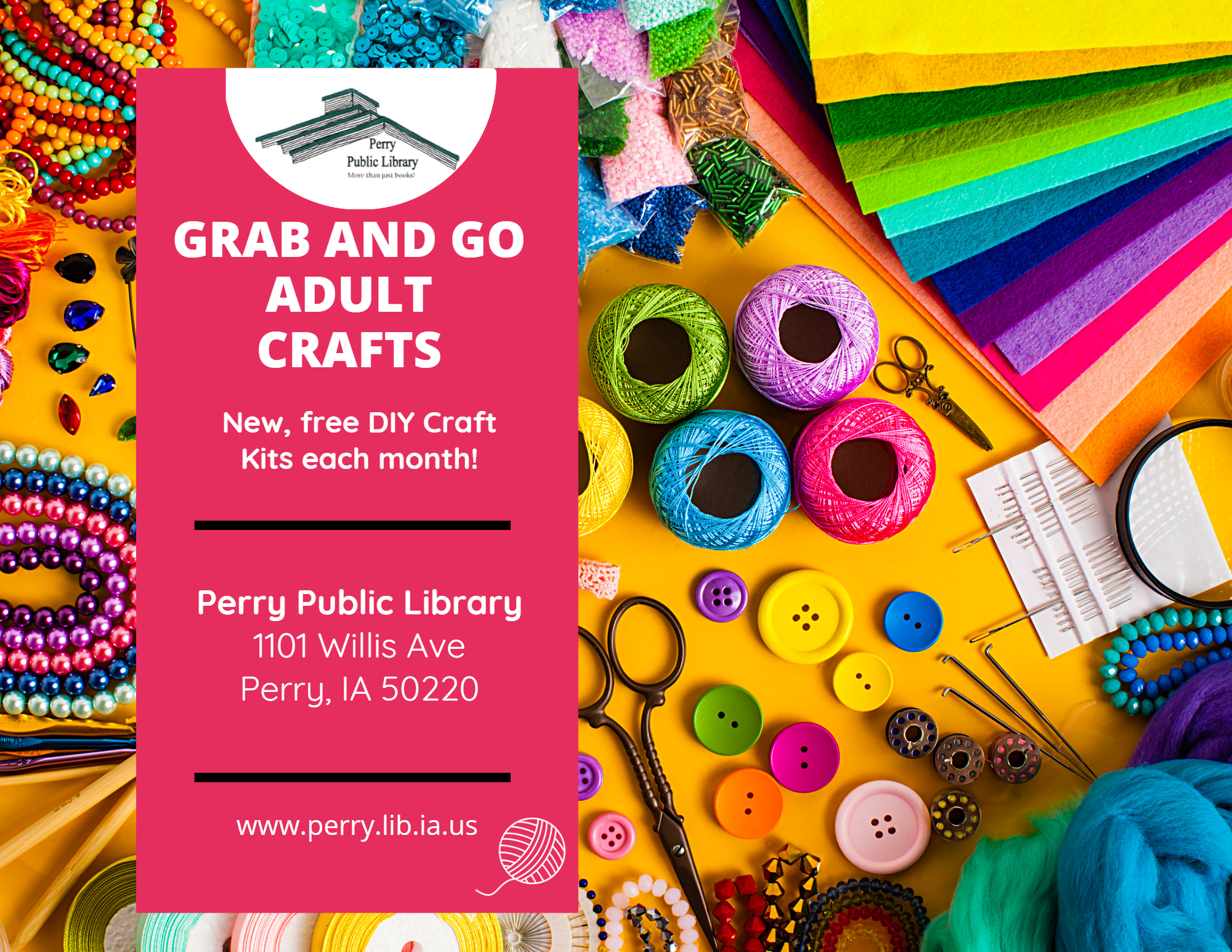Each month, Perry Public Library will offer a new Adult Grab & Go Craft Kit! These Free, DIY kits are available for in-person pick-up at the library. Instructions for past Grab and Go Adult Crafts will be posted here in the Grab and Go Craft Archive.