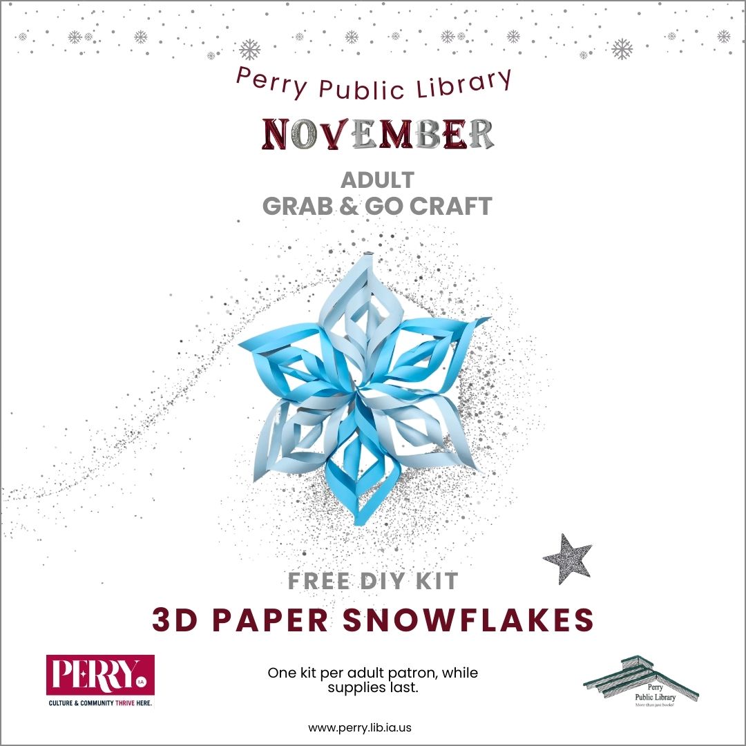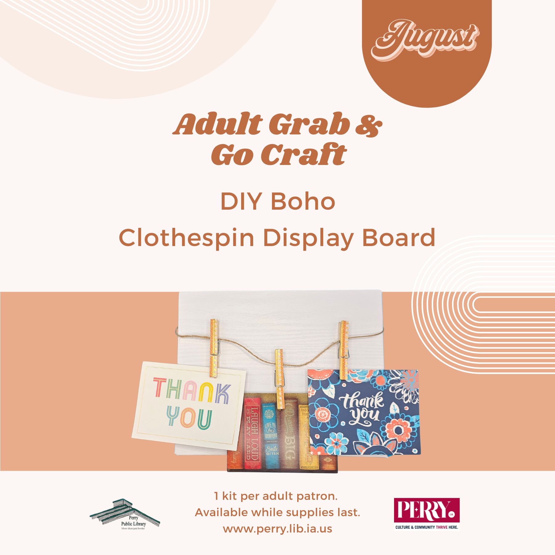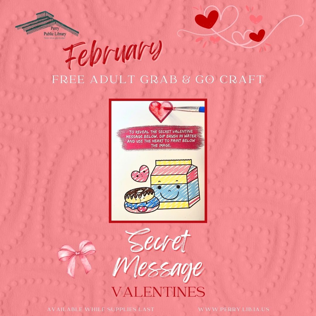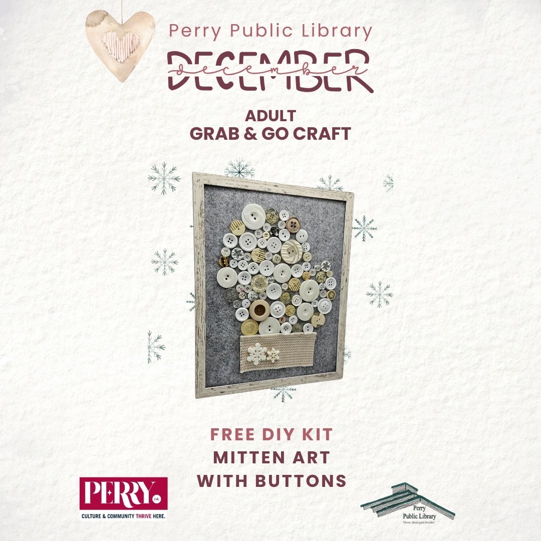 Each month, Perry Public Library will offer a new Adult Grab & Go Craft Kit! These Free, DIY kits are available for in-person pick-up at the library. Instructions for past Grab and Go Adult Crafts will be posted here in the Grab and Go Craft Archive.