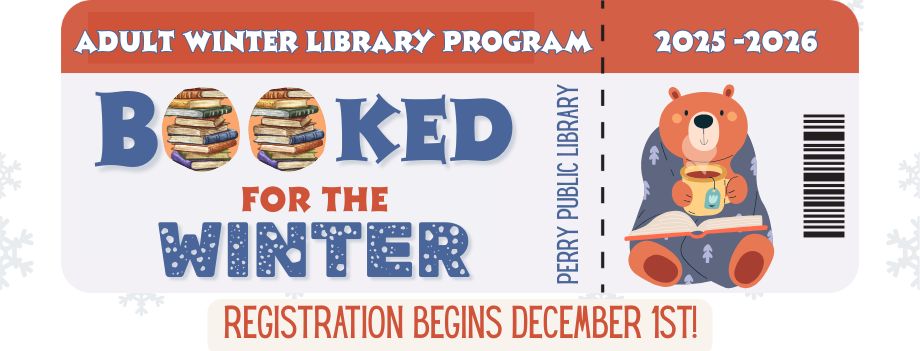 Register for Perry Public Library’s Winter Library Program: Booked for the Winter, Beginning December 1st