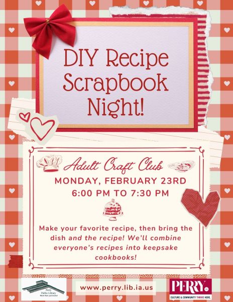 February Adult Craft Club: DIY Recipe Scrapbook Night | Monday, February 23rd | 6:00 pm to 7:30 pm