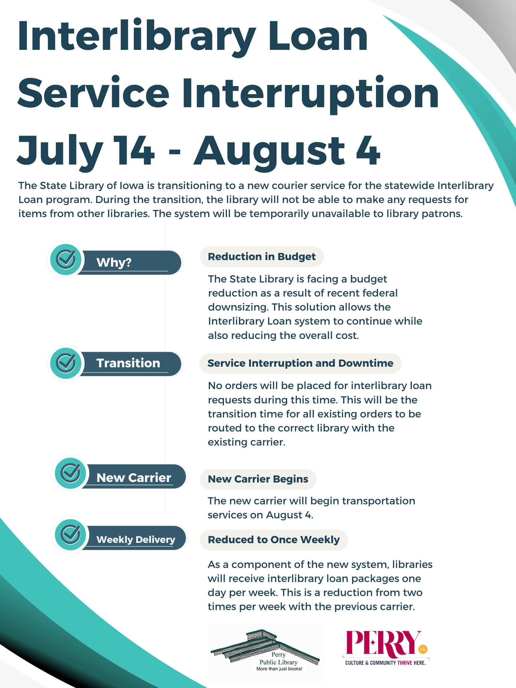 ILLs are just like holds. We’ll notify you by the method you’ve chosen (text, e-mail, or phone) when the item is ready for you to pick up.