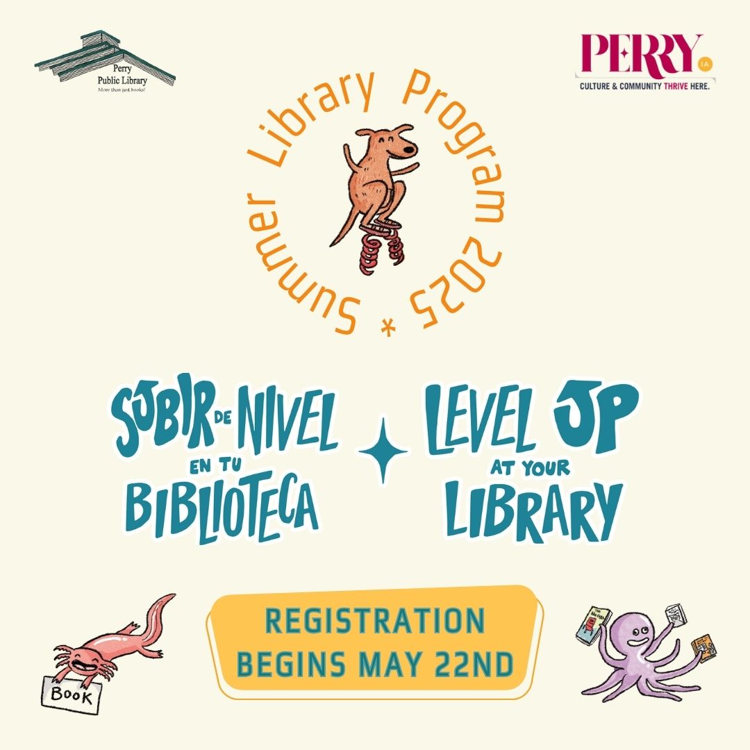 Summer Library Program Are you ready to Level Up at Your Library this summer? Registration begins for Children, Teens, and Adults on May 22nd! 2025 Theme Level Up at Your Library