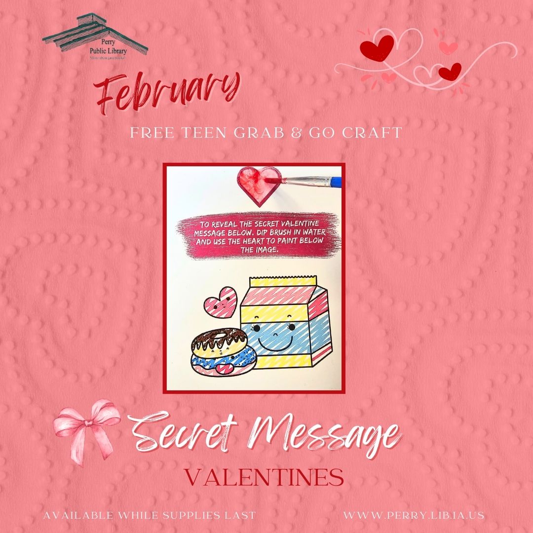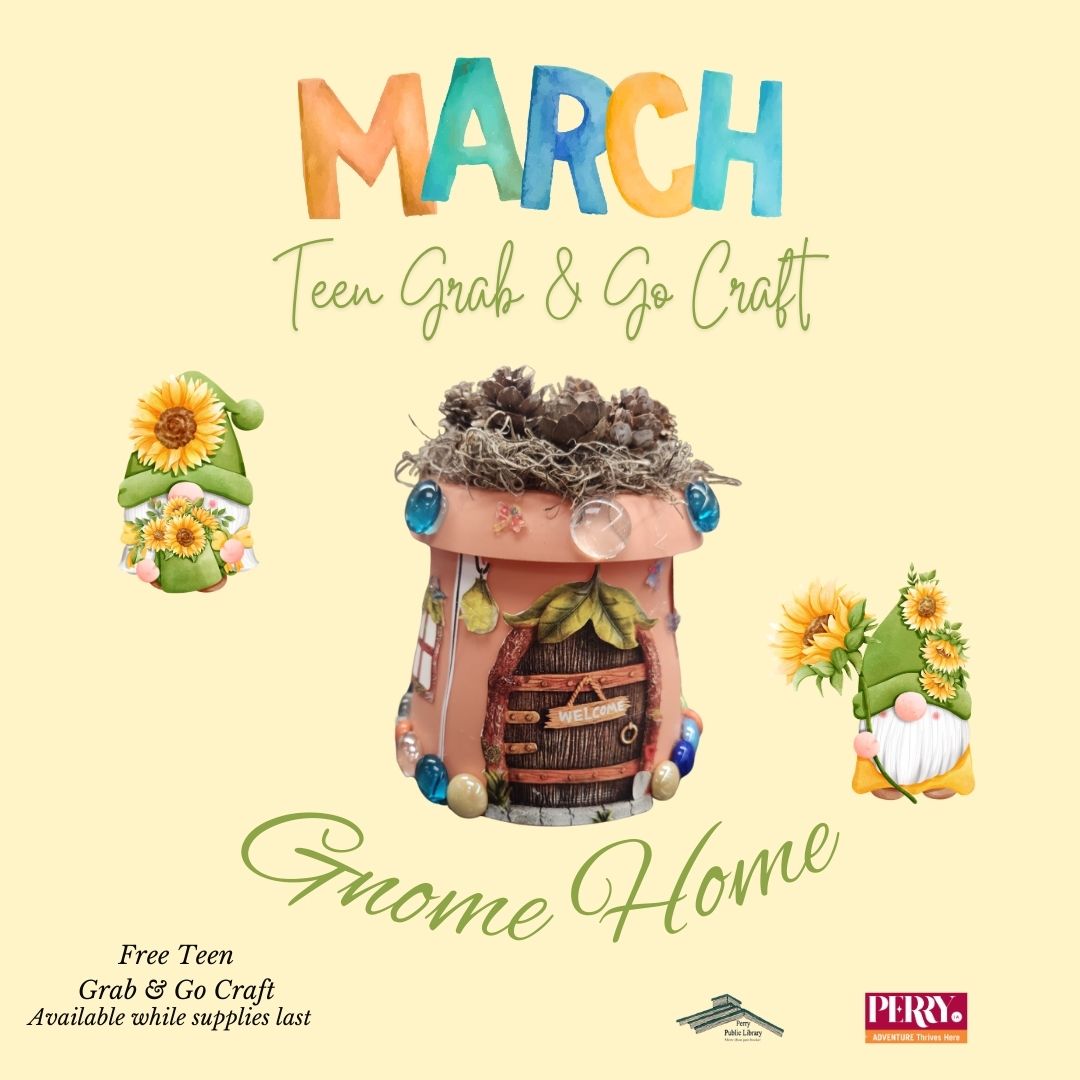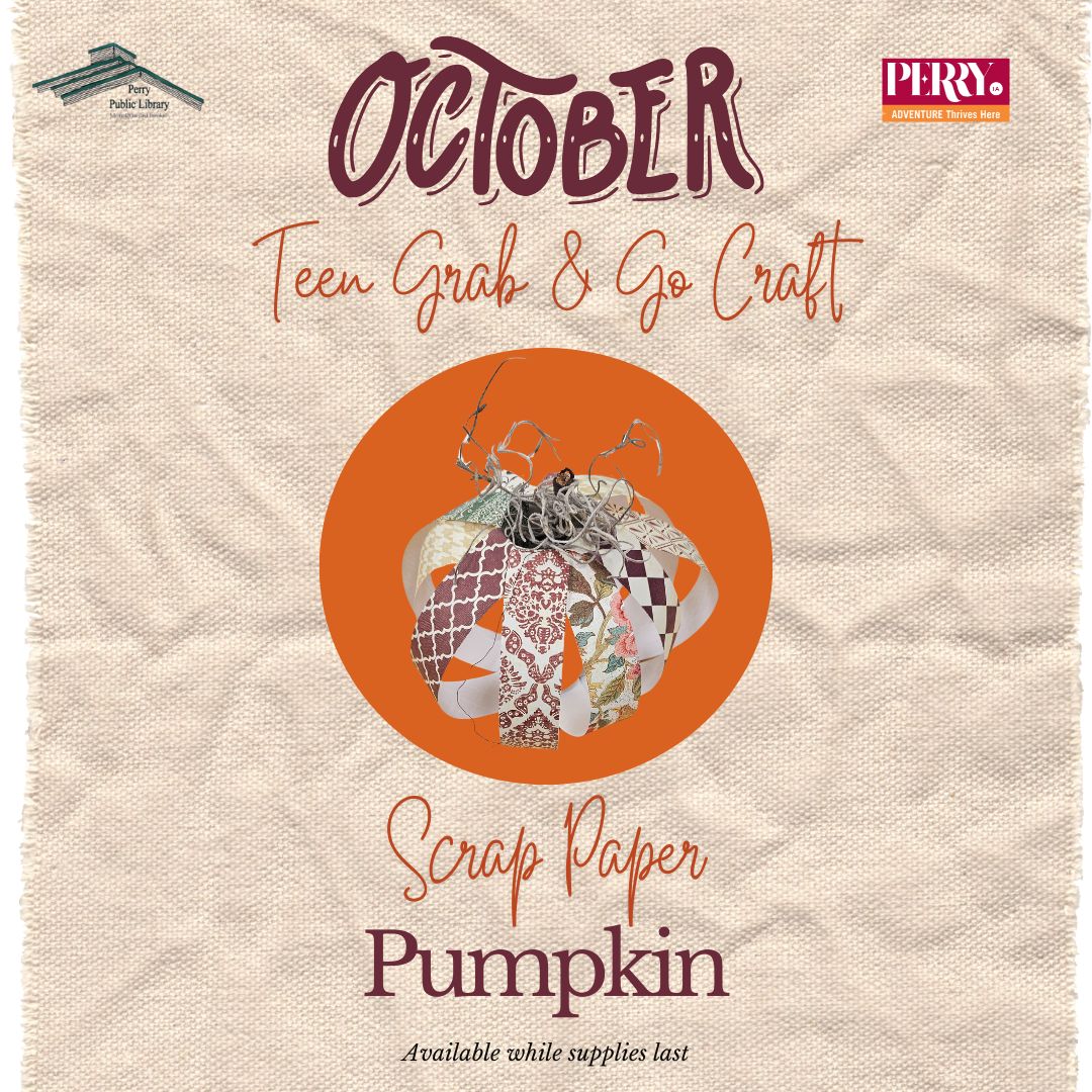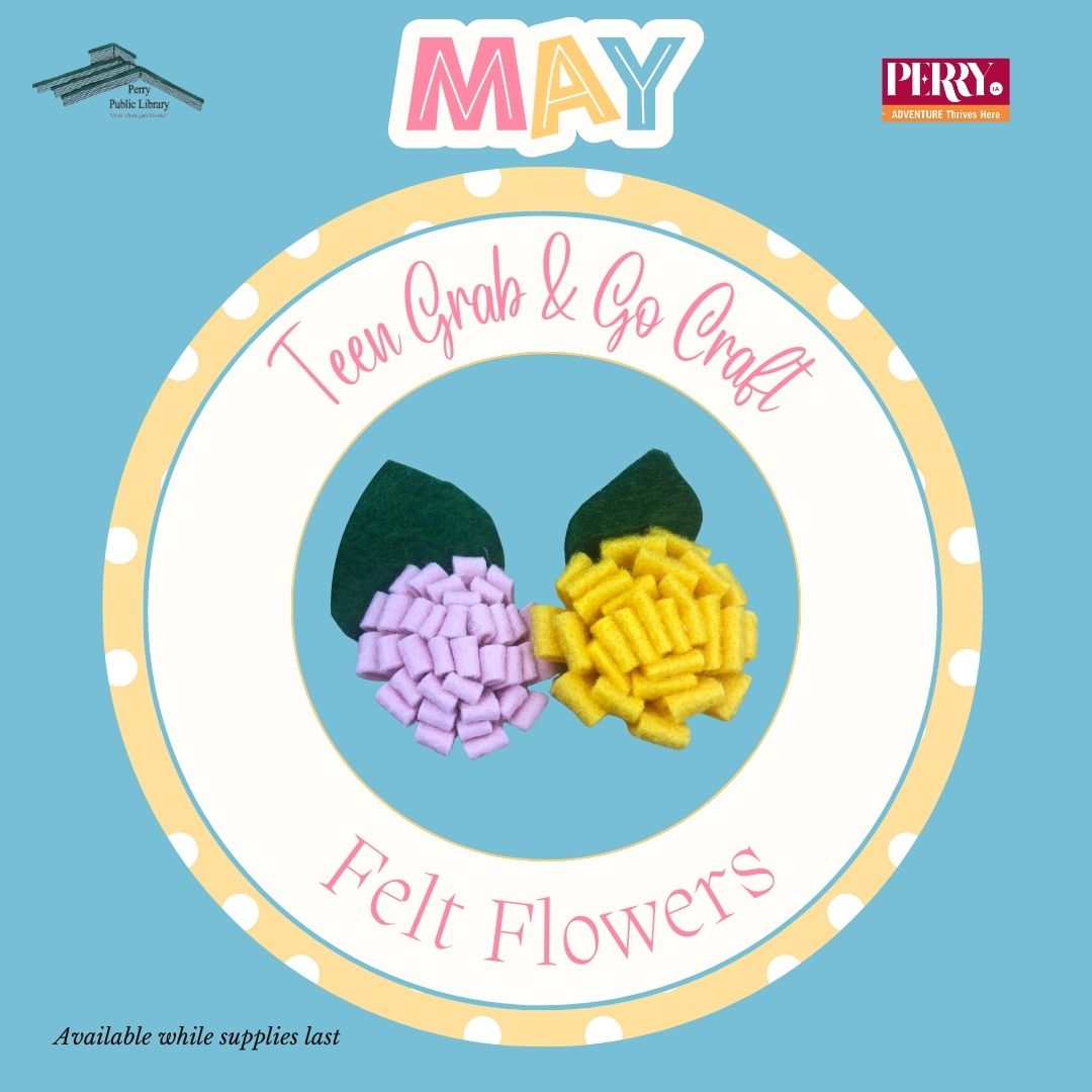 Each month, Perry Public Library will offer a new Teen Grab & Go Craft Kit! These Free, DIY kits are available for in-person pick-up at the library. Instructions for past Grab and Go Teen Crafts will be posted here in the Grab and Go Craft Archive.