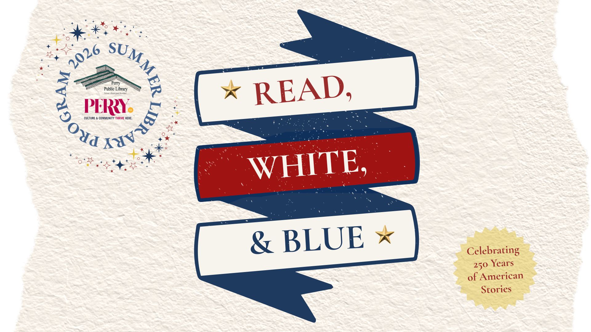 Teen Summer Library Program READ, WHITE, & BLUE: SUMMER 2026 Check back soon for information on our READ, WHITE, & BLUE 2026 Summer Library Program Celebrating 250 years of American stories! Summer Programs and Activities for Teens No Slides Entered.