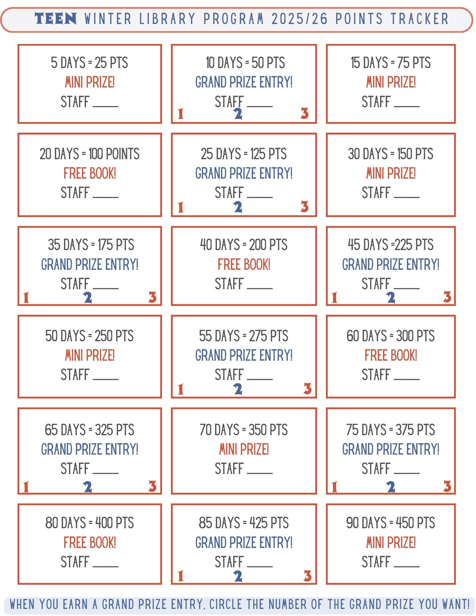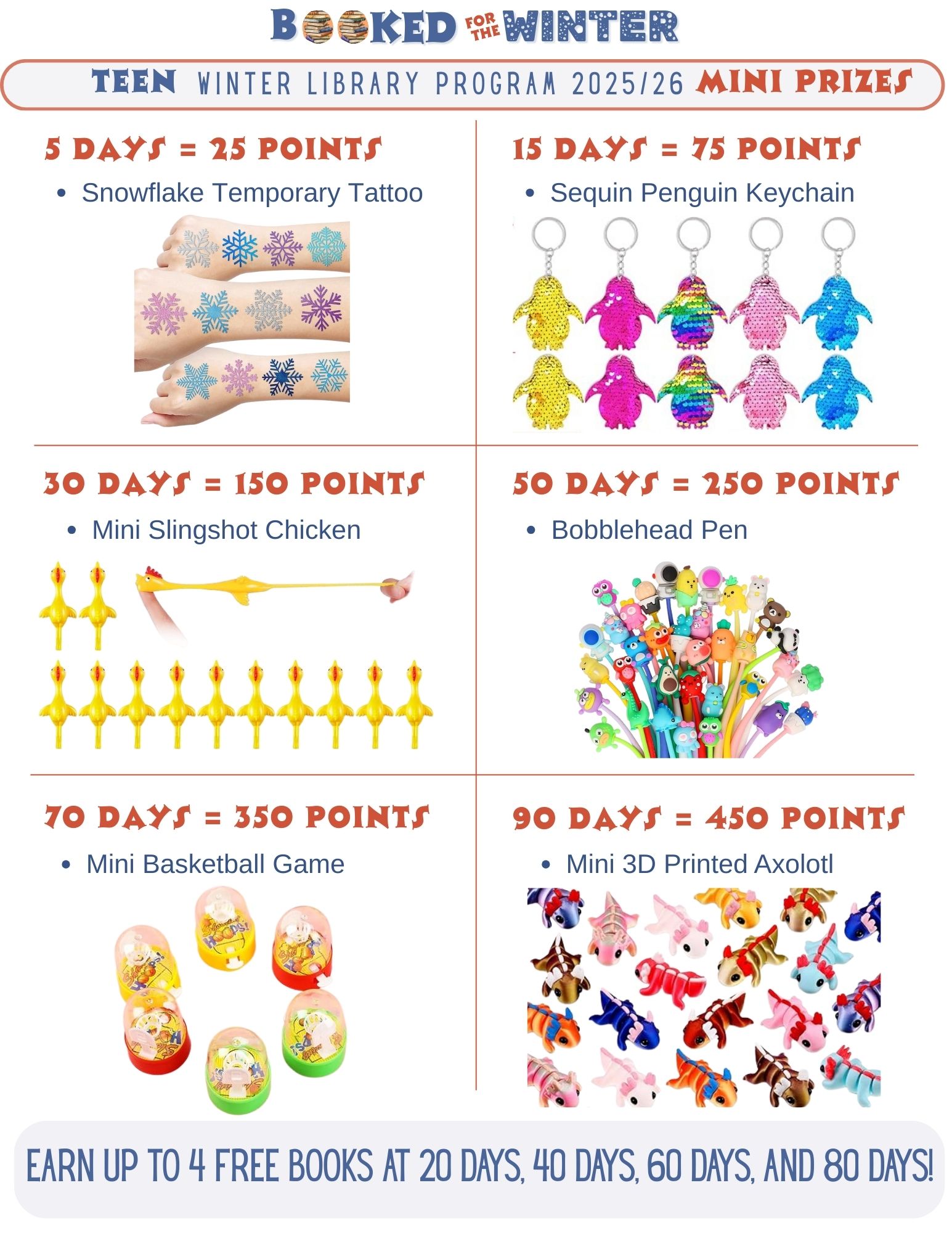 The Teen Winter Library Program will be from December 1, 2025, through February 28, 2026!